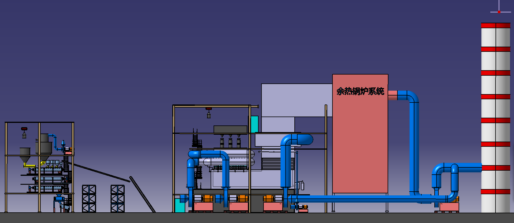 本方案以石油焦粉為主燃料(原料),干化污泥等其余固廢為輔助燃料,黏結劑為輔料,先經成球工藝成球成為球狀的SRF,SRF再送入熔融爐(絕熱爐膛)內燃燒熔融,產生約1300℃的爐膛高溫煙氣,再混入140℃回流煙氣降溫至800℃~900℃(鍋爐入口平均煙氣溫度~850℃)進入用戶余熱鍋爐。