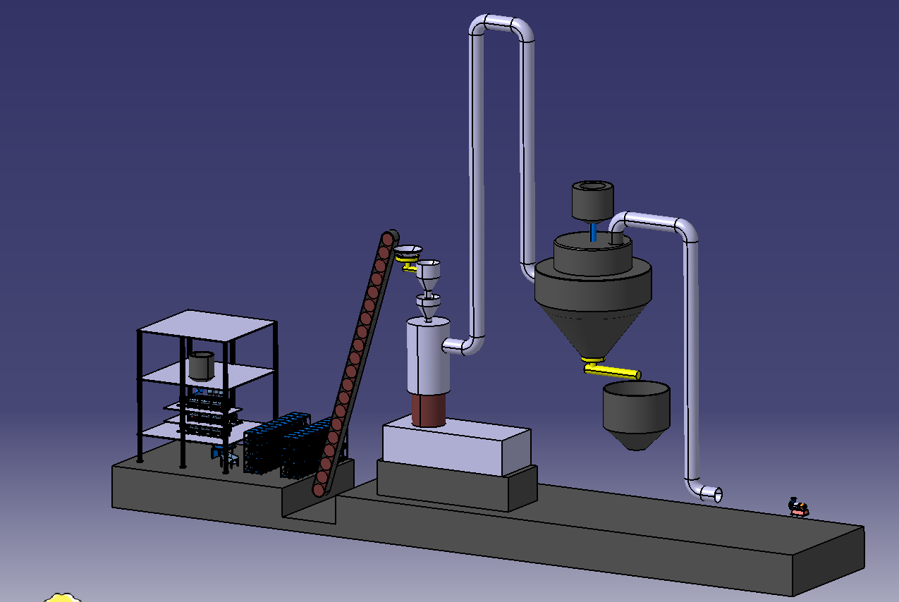 石油焦粉耦合氣化熔融與石油焦粉耦合余熱利用原料一樣,以石油焦粉為主燃料(原料),干化污泥等其余固廢為輔助燃料,黏結劑為輔料,先經成球工藝成球成為球狀的SRF,SRF再送入熔融爐(絕熱爐膛)內氣化熔融,生成的可燃氣體通過管道進入凈化系統,將可燃氣體中的粉塵、氯等進行脫除,最后由羅茨風機送入燃燒器。石油焦粉基本沒有揮發分,通過氣化熔融裝置,將CmHn析出,供后續產線用。